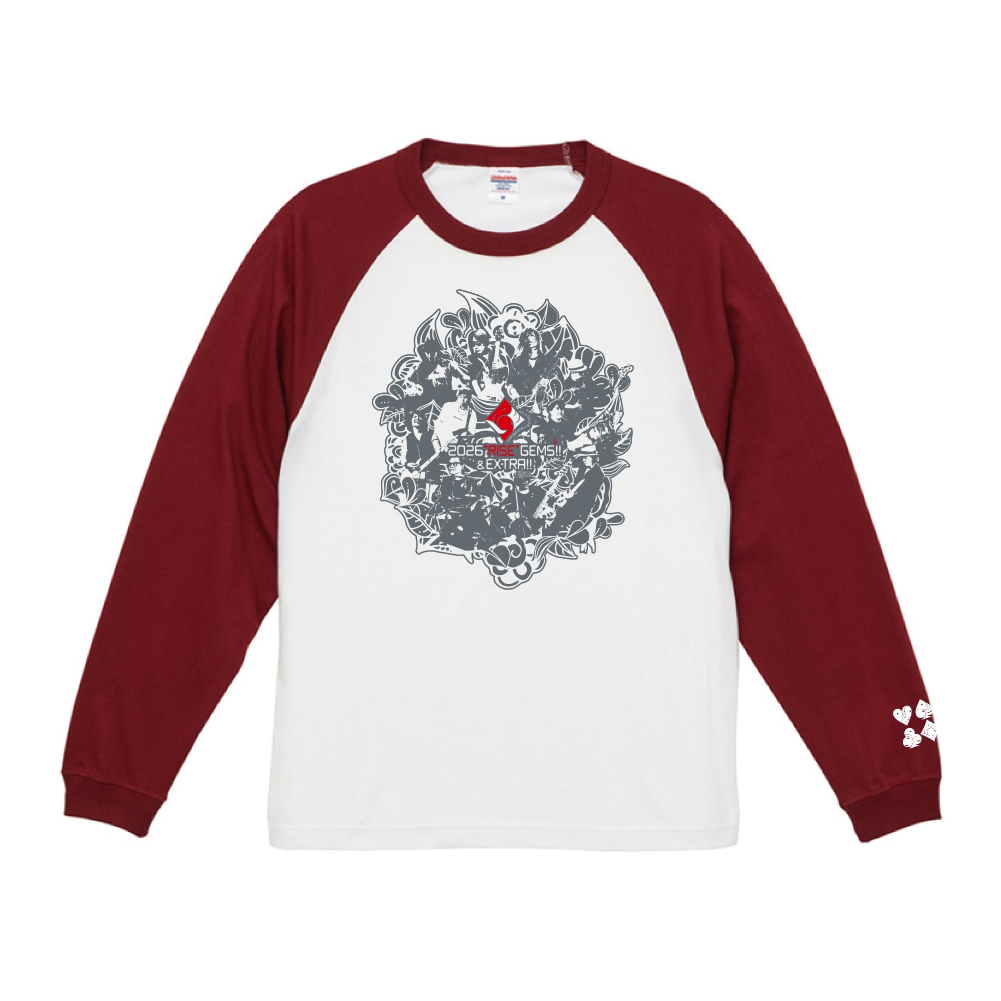 【ホワイト×バーガンディー】ツアーラグランTシャツ 2026"RISE"GEMS!!&EXTRA!!